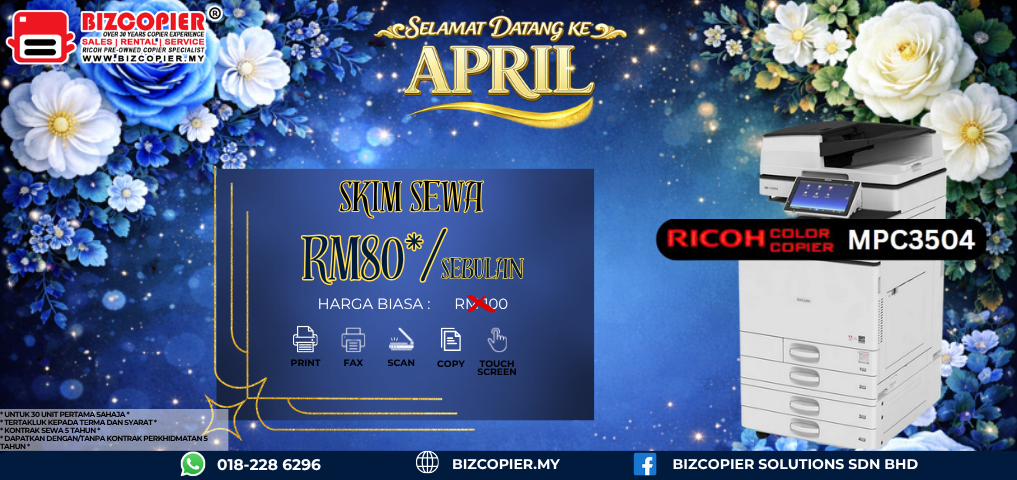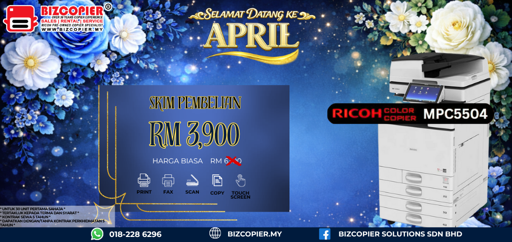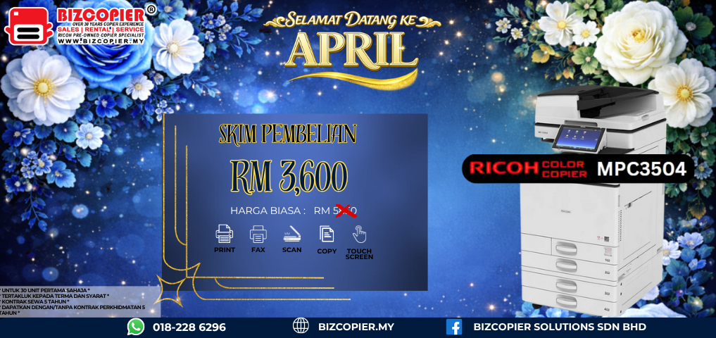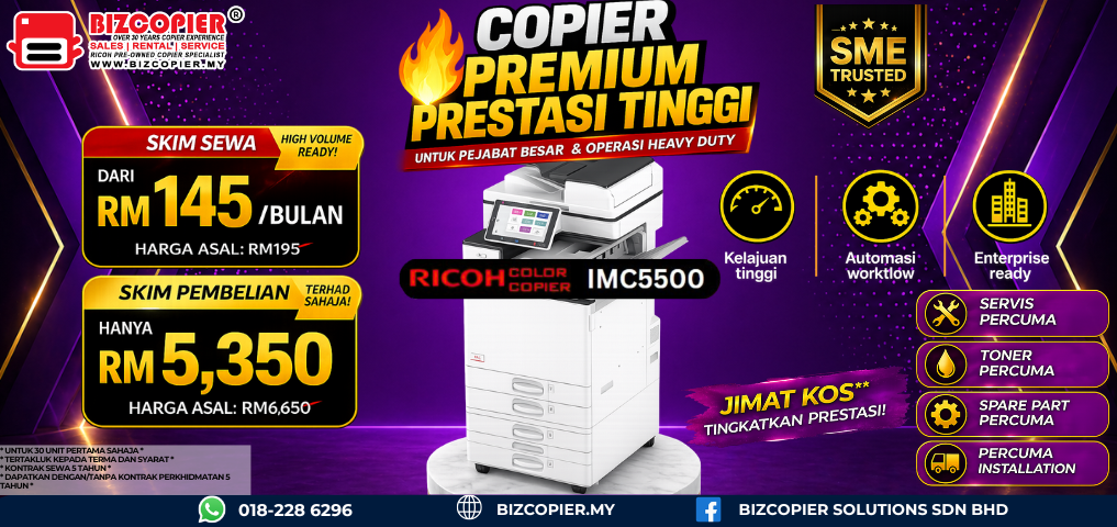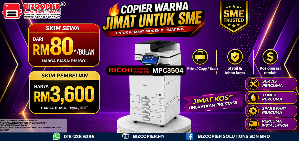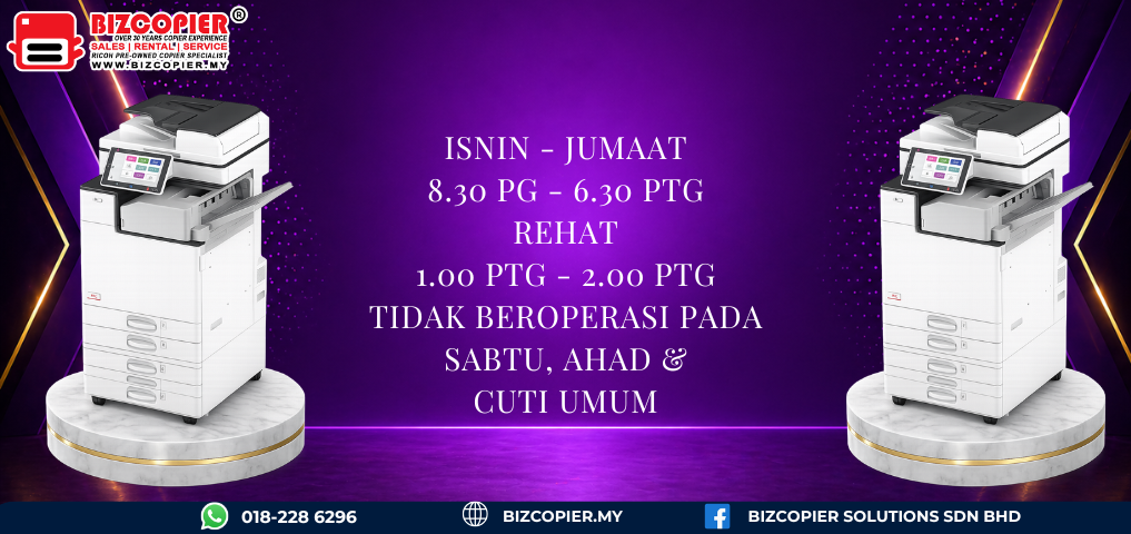 Don’t miss out on this opportunity to streamline your workflow and take your business to new heights. Contact us today at 018-228 6296 to request a Ricoh copier quotation and discover how our purchase scheme promotion can benefit your business.